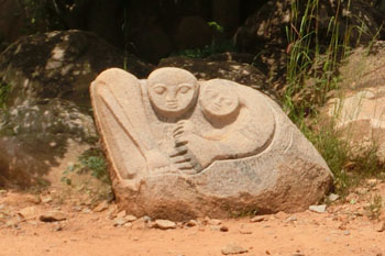 首都Ouagadougouの東方約30km、ZiniareとNagreongoのちょうど中間に位置するLaongo村に彫刻庭園があります。 露出された花崗岩に彫刻された作品が数多く展示されており、1998年から2年に一度海外からアーティストを庭園に招いて作品が作られ続けています。 日本からも友好の架け橋というタイトルで、INOUE氏の作品が展示されています。(左側上から4番目)