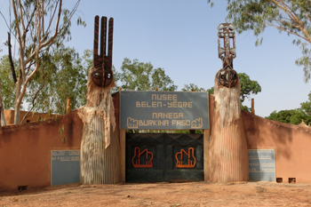 首都ワガドゥグから、国道22号線を北に50㎞ほど行くと、Manegaという村に国立民族博物館があります。 ここでは、ブルキナファソの歴史や生活様式などを学ぶことができます。ただ、ガイド(フランス語のみ)を付けるのが必須で、主だった部屋は土足禁止、脱帽、撮影禁止になっております。 したがって、ここに紹介できる写真は限られてきます。