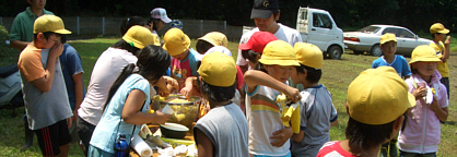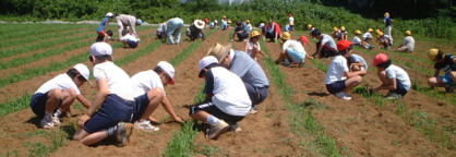 夏休みを返上しての草取り作業。労働の後、もぎたてのトウモロコシはとても美味しかったです。