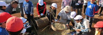 稲刈り・脱穀、芋掘りを行いました。ネリカ米の収穫は約80kg。(朝日新聞、毎日新聞)
