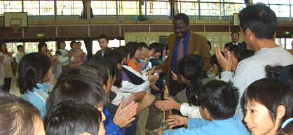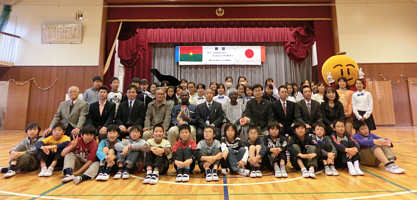 今年は小学校の体育館で実施、新任大使を迎えて、95名が参加しました。ネリカ米を使った羊肉のスムバラご飯、豚汁などを作り、また餅つきなどを行い、両国間の文化交流を行いました。