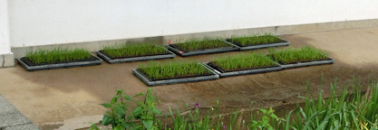 玄関先に設置した苗床、適切な水をやっているので、枯れることはなく、順調に育っています。