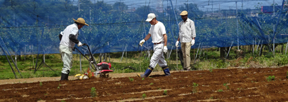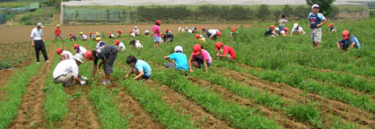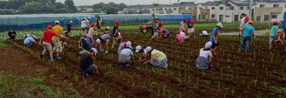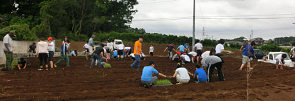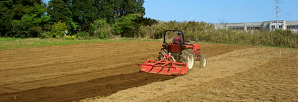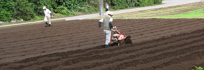 農家の方々のご協力を得て、定植するための畝上げを行いました。降雨が少なく少し心配です。
