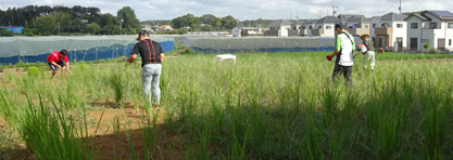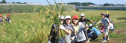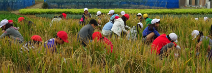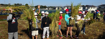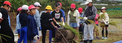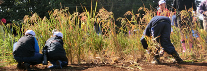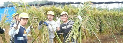 横山市長も参加して、ネリカ米の刈り入れを行いました。今年は豊作で、120kg以上の収穫。