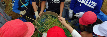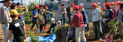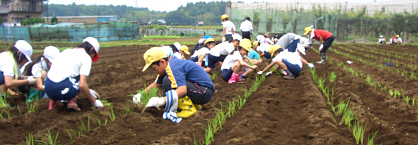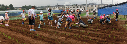 児童51名が参加。サツマイモの苗も600本植えました。