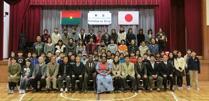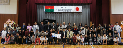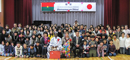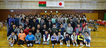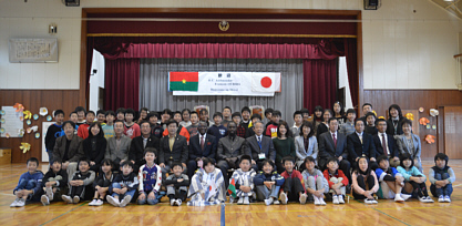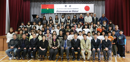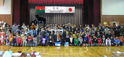 ブルキナファソ大使夫妻、白井市長を含む183名が参加。餅つき、琴演奏、和太鼓、ソーラン踊り、子どもたちの合唱などが披露され、ブルキナファソとの国際交流が盛大に行われました。
