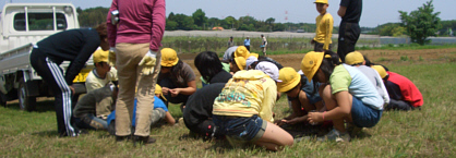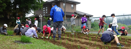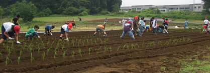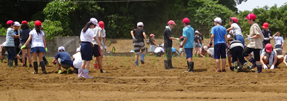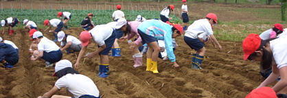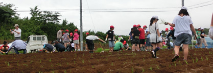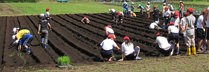 ネリカ米の定植が終わった後、児童たちとジャガイモを約250個植え付けました。7月収穫。