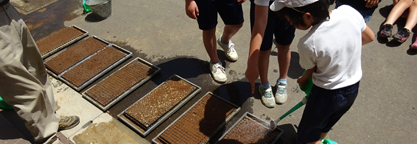 今年で16年目を迎えるネリカ米稲作。5年生児童48名と、576ポットにネリカの種もみを蒔きました。