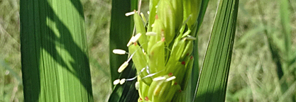 通年より2週間ほど早く、初穂とイネの花を観測しました。