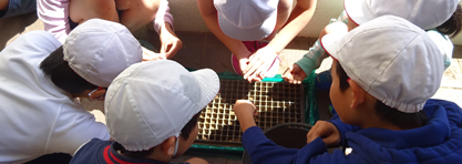耕作地を校庭内に移しての活動。今年の5年生は28名、近くですので、毎日観察できますね。