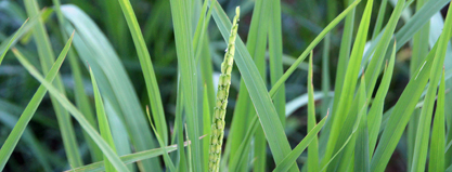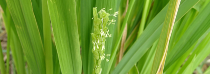 昨年より3日早い、ネリカ米の初穂。今年は生育もよく、120cm以上に伸びています。