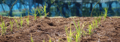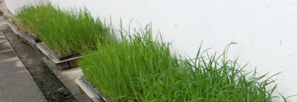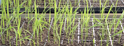 小学校で育てていたネリカ米の苗が約20cmに育っています。全てが発芽し、苗は4,000本以上。