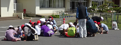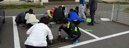 コロナ禍の中、マスクを着けて、28名の児童たちと草取り作業を行いました。