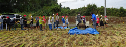 大事に育てた、ネリカ米の刈入れを行いました。やはり人数ですね、40分ほどで終了でした。