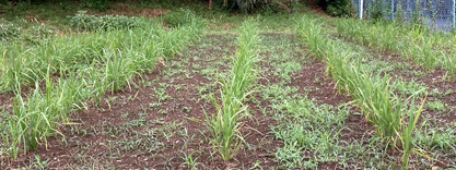 記録的な日照不足で、生育はいまいちです。雑草も元気がありません。(生育57日目)