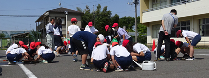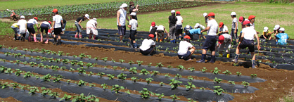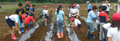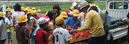 5年生児童40名が参加。スイカの苗も40本同時に植えました。初めてのスイカ、楽しみですね。