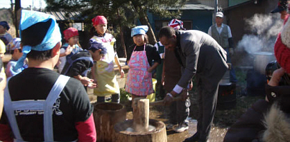 駐日大使家族を含む192名が参加。餅つき、琴演奏、和太鼓、ソーラン踊り、子どもたちの合唱などが披露され、食文化の交流が盛大に行われました。今年から、一般参加が可能になっています。