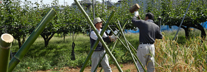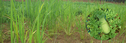 1カ月余り、ポットで元気に育ったネリカの苗を、畑に定植しました。