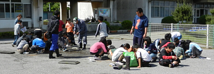 白井第一小学校の児童たち総数74名が参加。(朝日新聞)
