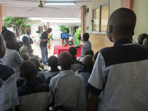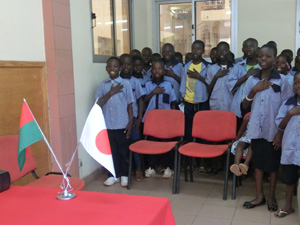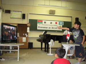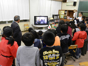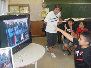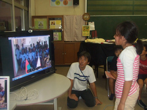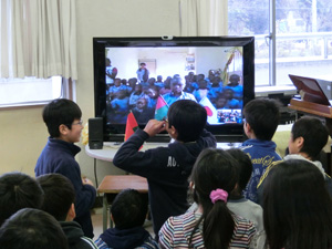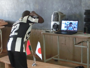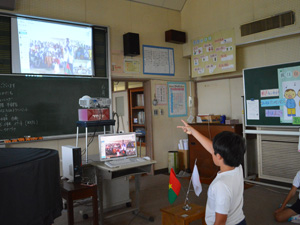 白井市立白井第一小学校とブルキナファソのカバネ小学校とが海外学校交流を結んだことから、SkypeによるTV交流会を開始いたしました。 国歌斉唱、質疑応答、将来の夢、合唱、ダンス、じゃんけん、にらめっこなど、児童たちが企画し進行を進めて行きます。開始時間は、時間差が9時間あるので日本時間16:00〜18:00(ブルキナ時間07:00〜09:00)、第2回目の時は、ウビダ大使も参加して楽しんでおられました。