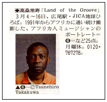 1991年より、憑かれるようにしてアフリカに通い続け、すばらしいアフリカ人ミュージシャンに出会い、数多くのポートレートおよび集合写真を4×5判の大型カメラで撮ってきました。アフリカの人々にとって、歌と踊りとリズムは毎日の暮らしに欠かせません。これらの写真は、ある意味僕からのそんな彼らへの一方的なラブレターかもしれません。
